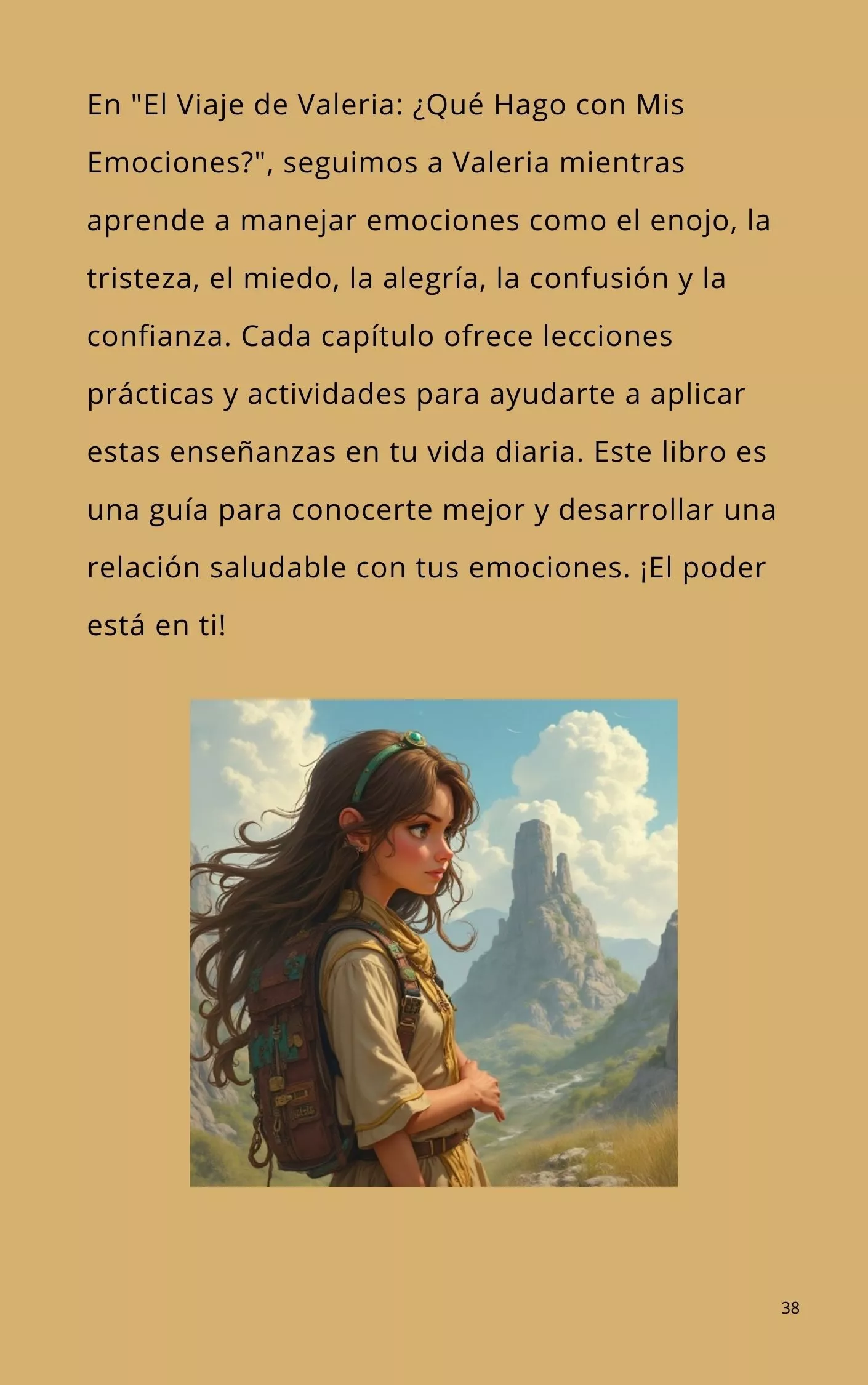 En "El Viaje de Valeria: ¿Qué Hago con Mis Emociones?", seguimos a Valeria mientras aprende a manejar emociones como el enojo, la tristeza, el miedo, la alegría, la confusión y la confianza. Cada capítulo ofrece lecciones prácticas y actividades para ayudarte a aplicar estas enseñanzas en tu vida diaria. Este libro es una guía para conocerte mejor y desarrollar una relación saludable con tus emociones. ¡El poder está en ti!