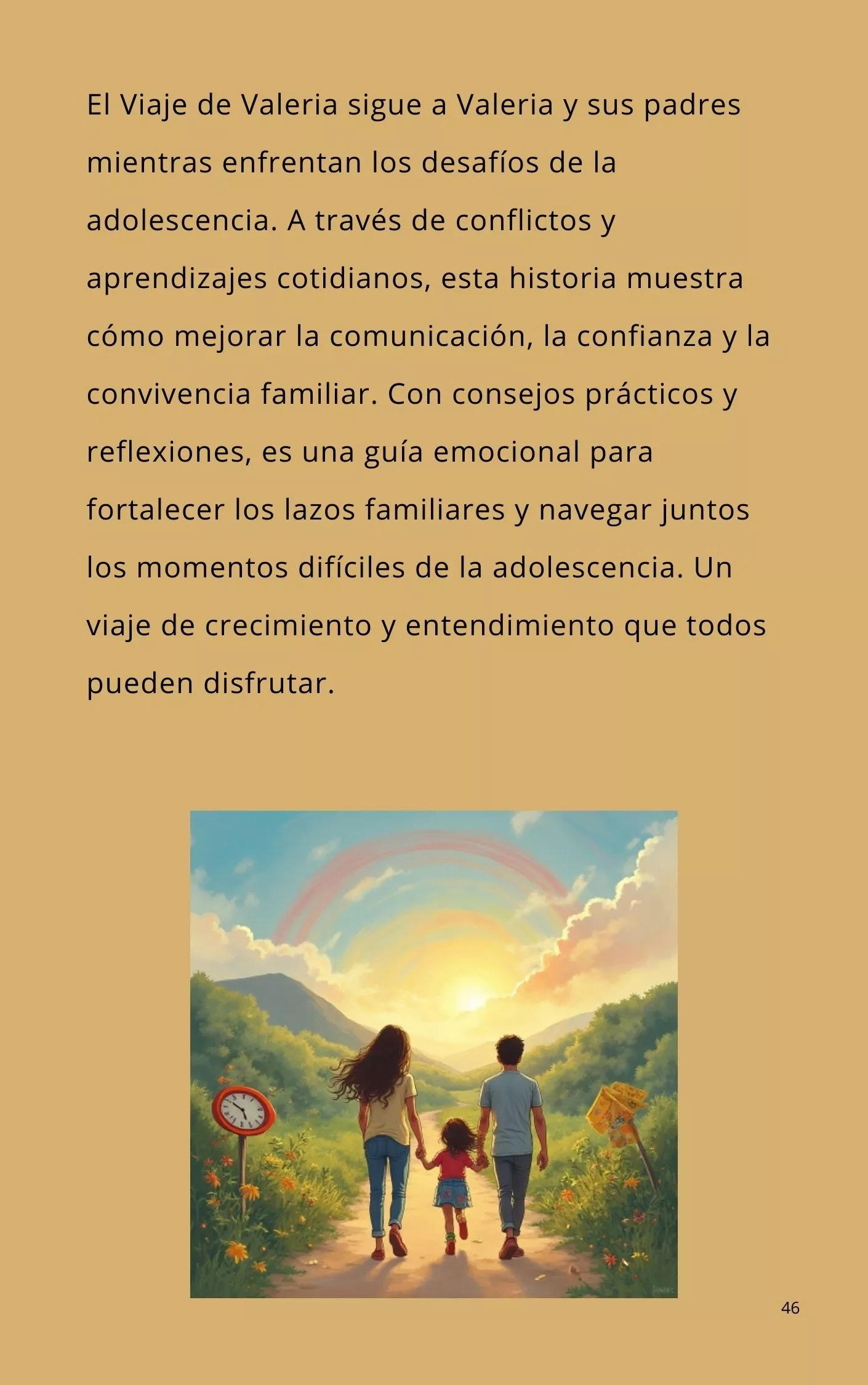 El Viaje de Valeria sigue a Valeria y sus padres mientras enfrentan los desafíos de la adolescencia. A través de conflictos y aprendizajes cotidianos, esta historia muestra cómo mejorar la comunicación, la confianza y la convivencia familiar. Con consejos prácticos y reflexiones, es una guía emocional para fortalecer los lazos familiares y navegar juntos los momentos difíciles de la adolescencia. Un viaje de crecimiento y entendimiento que todos pueden disfrutar.